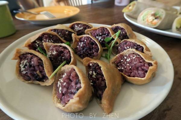 超喜歡紫米豆皮壽司與莎莎醬軟法