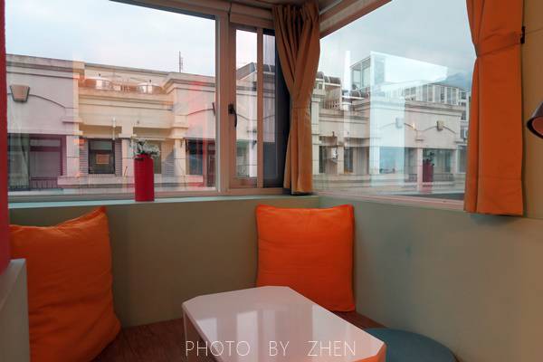 橘紅配色製造活潑氣息,一旁的白色躺椅也是超級舒服!!