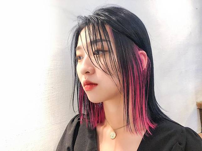 區塊染藍黑X桃紅本身就很有動漫人物的效果,搭配性感微濕髮線條完全就是日系女孩都追捧的超時尚look啊