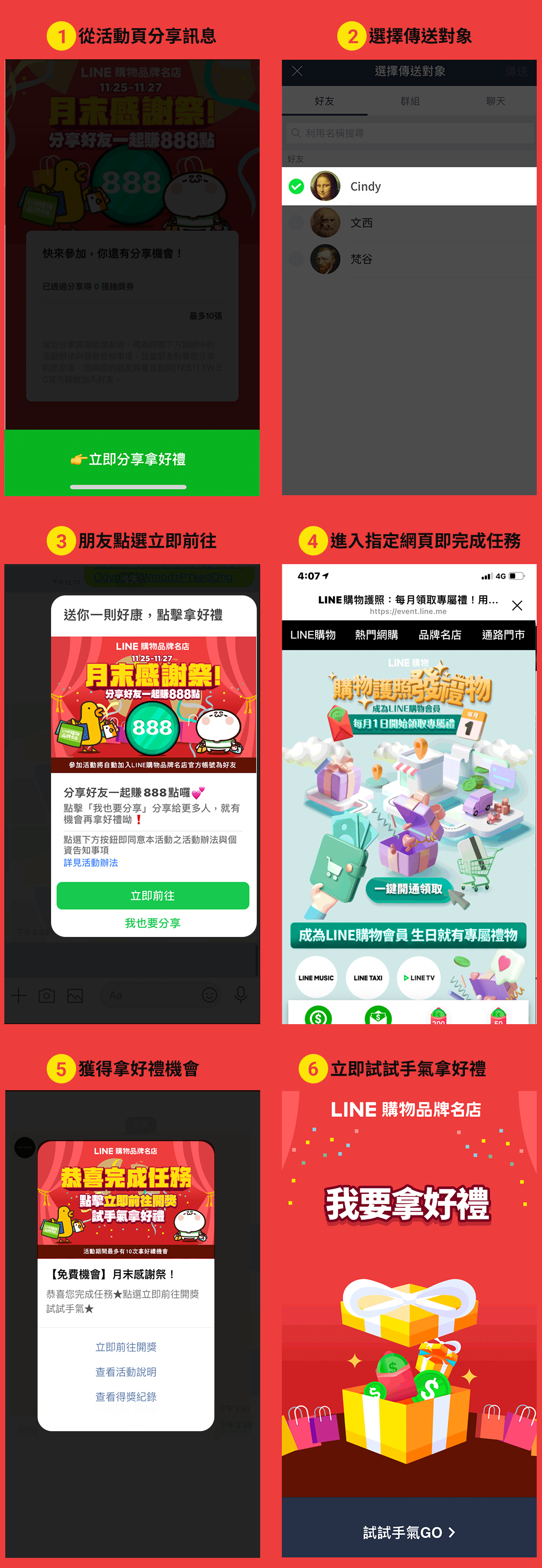 3. 分享者需透過活動頁分享網址,轉發他人的分享網址,好禮將會歸屬於原分享者。