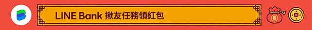 活動說明:揪友任務領紅包!加入LINE Bank官方帳號好友免費下載「鴻兔大展」拜年賀卡,開戶成功享刷卡立即回饋1% LINE POINTS無上限,揪好友開戶再得紅包LINE POINTS 100點,多揪多得!
