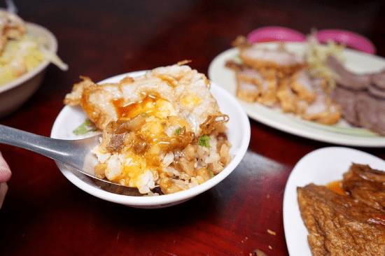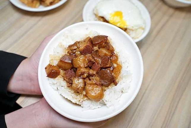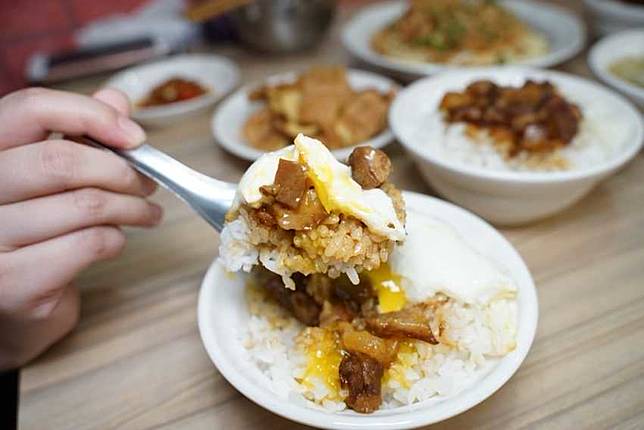 說到流出犯規蛋液的荷包蛋滷肉飯,很多人就想到這家戽斗滷肉飯!每天早上六點開始營業就開始要排隊了。最受歡迎當然是滷肉飯+鴨蛋荷包蛋,沒錯!就是鴨蛋!用鴨蛋煎出來的荷包蛋蛋香特別香,且蛋液的色澤更為金黃可口。