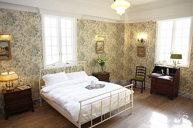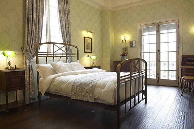 相較於起居間偏華麗的風格,房間的佈置較為雅緻,搭配歐式古董傢俱,創造質樸簡約卻又毫不馬虎的休憩空間。在這裡也要貼心提醒,因為古董物件眾多,且為了搭配建築本身設計,基於安全考量,是不提供12歲以下孩童入住的。