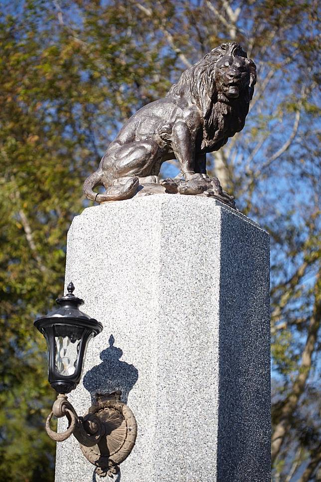 一旁花園中,石柱上的鐵獅是荷蘭拍賣的戰利品,19世紀初的產物。