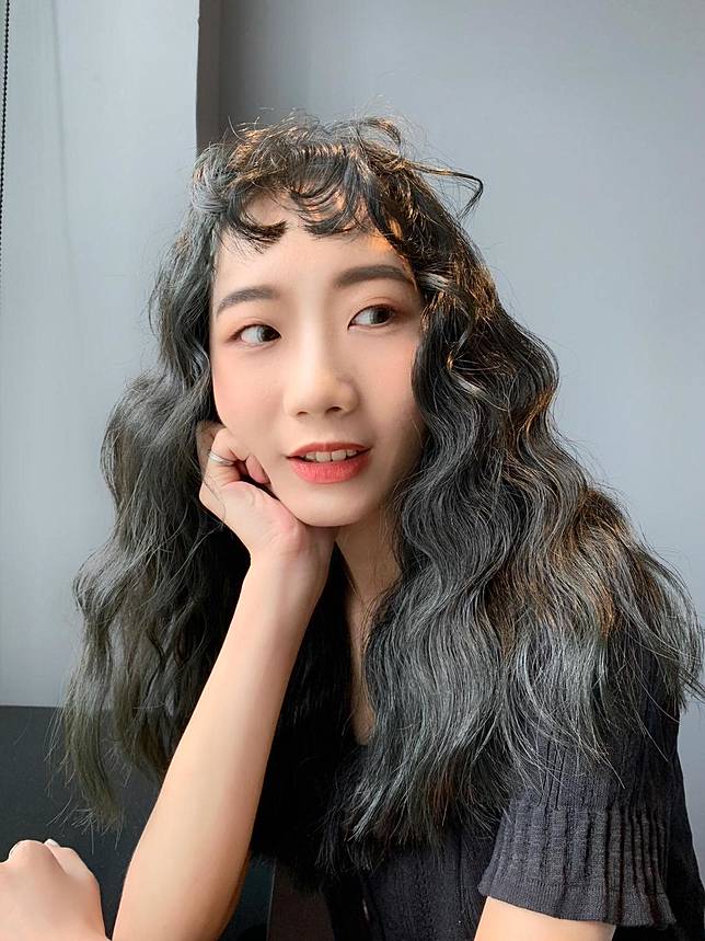 過肩的低層次復古卷,搭配黑茶髮色與眉上瀏海瞬間就很有日系東洋娃娃神秘甜美fu
