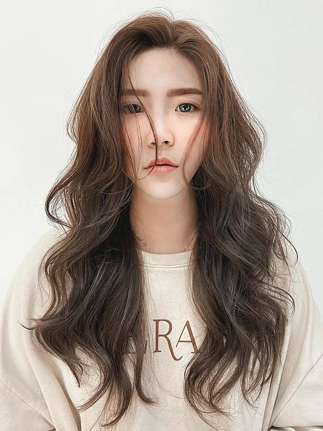 韓系風格呈現浪花卷 a.k.a 魚尾燙,強調蓬鬆柔軟與髮束線條感,就像浪花一圈圈一朵朵那樣柔美,搭配楓糖斑比髮色簡直就是韓劇裡的溫柔富千金