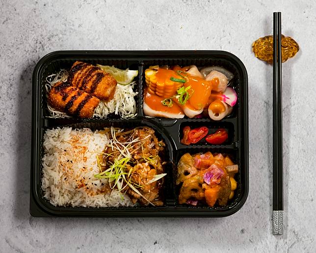 台中金典酒店的便當外帶外送服務,由香港廚藝總監阿培師操刀,設計平價五星美味的港味餐盒,提供蜜椒豬扒飯、油雞叉燒飯、烤鴨叉燒飯與最經典的招牌三寶飯等道地港味,每個只要150元。另還有400元雙主菜的「獨享海陸餐」,包括:美極生抽蝦+咖哩豬排套餐、XO醬干貝蝦球+無錫排骨套餐、糖醋魚+照燒雞排的酸甜組合。