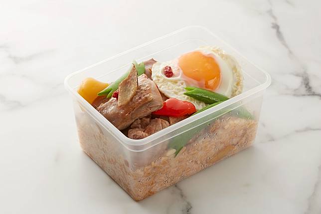 ▲名人坊推出招牌料理「富哥招牌炒飯便當」滿滿主菜與配菜。