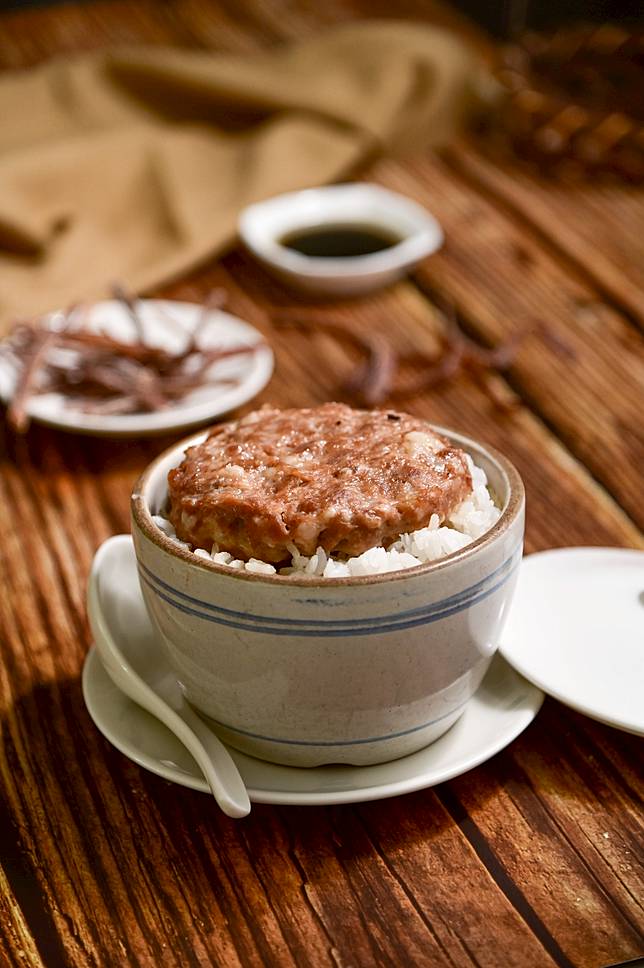 ▲土魷魚馬薺蒸肉餅非常家常的港式風味,鹹香可口。