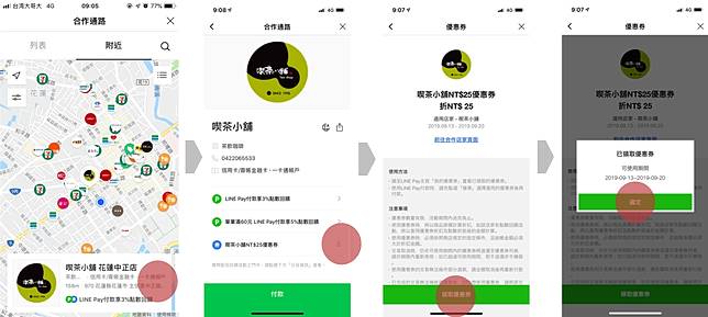 步驟1:開啟LINE Pay「合作通路」,點選「附近」 的 「喫茶小舖」