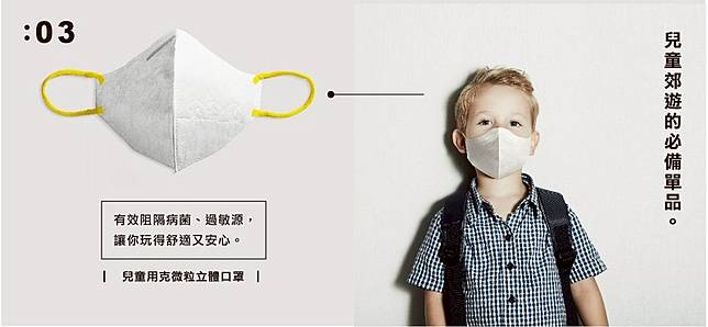 專利薄膜99%過濾保護肺部,立體氣室讓呼吸更舒暢,弧形設計造就時尚美學。