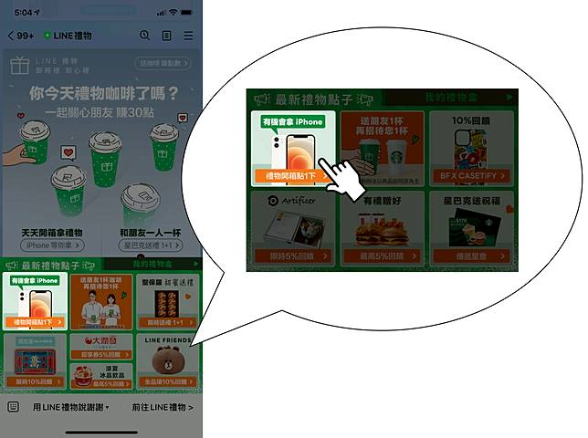 2. 透過跳出的活動圖片,進入「LINE禮物 即時禮到心裡」活動頁,即可獲得好禮機會1次。