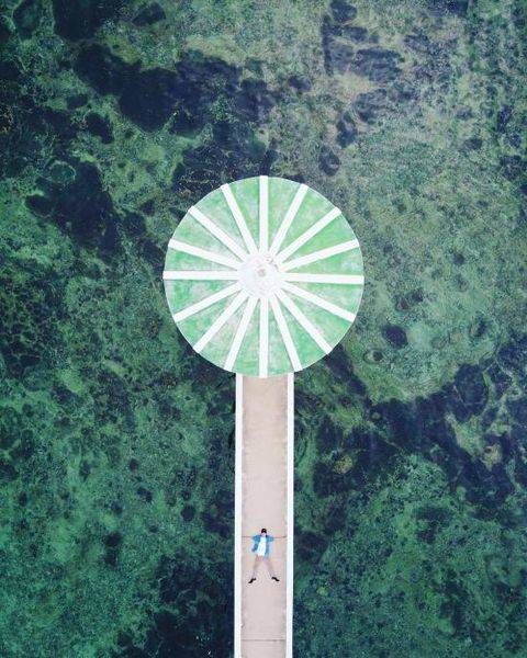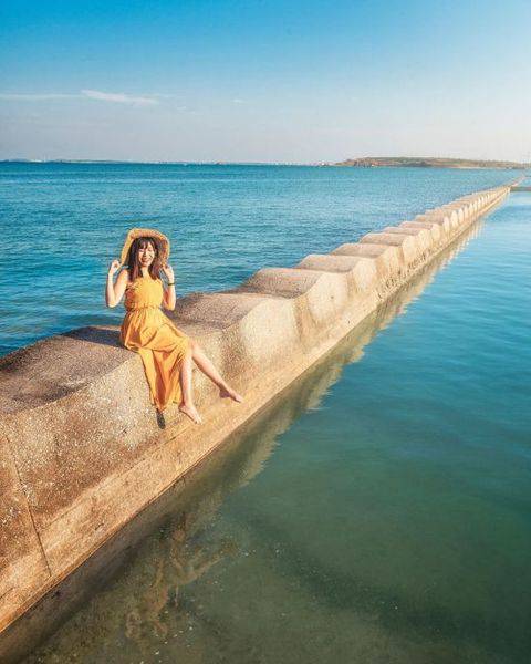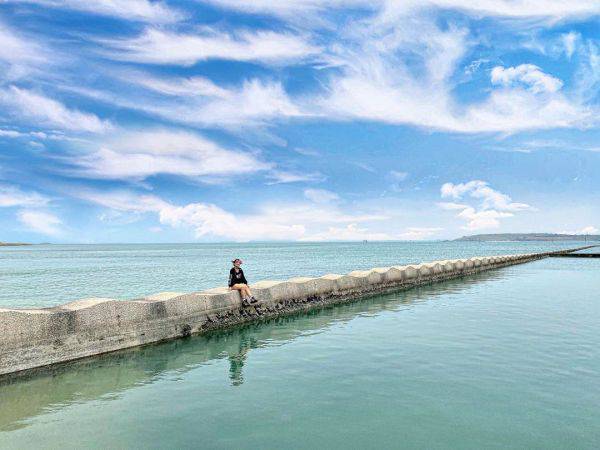 這原本是個荒廢的舊碼頭,一瞬間變成熱門景點,是因為穿過蜿蜒小徑,就能能直達碧綠海景,並且180度的海景同框,走在堤防上好像走在星光大道,讓我瞬間走路有風,一路望向盡頭是與海連結,難怪能夠成為網美景點!切記,漲潮時較危險,要注意自身安全喔