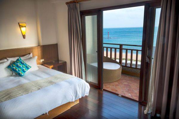 這座美式風格的別墅,任誰都難以抵擋它的魅力,距離海岸線只有50公尺,充滿活力的浪漫陽臺海景雙人房擁有270度的View,三面都看的到海窗,躺床上就看的到海景,搭配超可愛的珊瑚粉,整個人都年輕起來;另一間雙人房還有貴妃浴缸、陽臺,體驗360度的海景,邊泡邊享受。