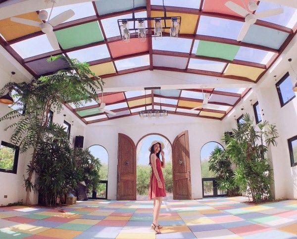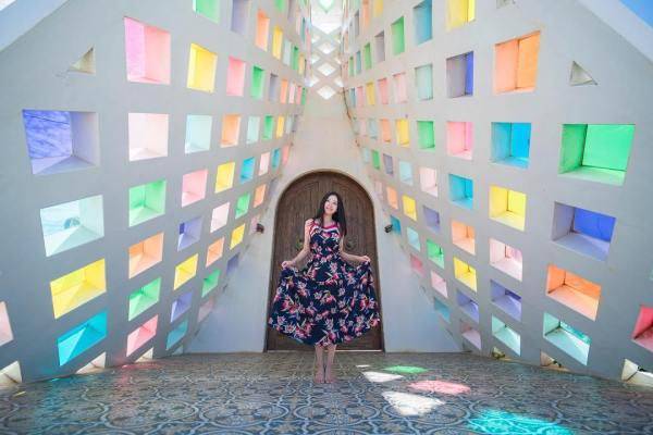 沒想到來到澎湖,也能找到像莊園般的下午茶餐廳,在純白色的希臘建築內享用英式下午茶,偶然發現有隱藏版的彩虹玻璃屋,陽光透過不同顏色的玻璃,交織成的光影,很迷人,有需多新人也會來這租借場地辦婚禮,這是多少女生心中的夢幻婚紗場地呀!另一頭的玻璃大門也貼上彩色的磁磚,絕對殺光你的底片。