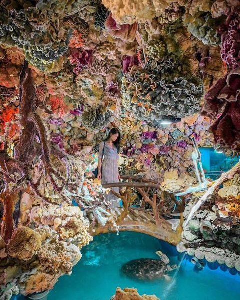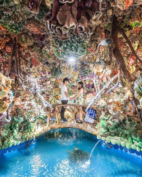 這間宮廟很特別,不僅外觀金碧輝煌,裏頭更藏了寶藏?唯一合法飼養綠蠵龜就在這!沿著廟裡的通道走,可以前往秘密宮殿,進到入口會發現不一樣的世界,除了有海龜在底下優游,一旁用大量珊瑚礁和咾咕石打造像是海底龍宮的華麗宮殿,讓人目不轉睛,有來澎湖別忘了來看看海龜,也見識一下美麗的地下宮殿。